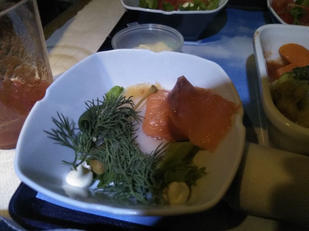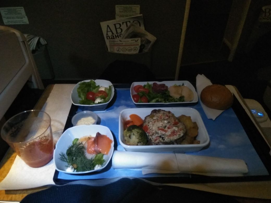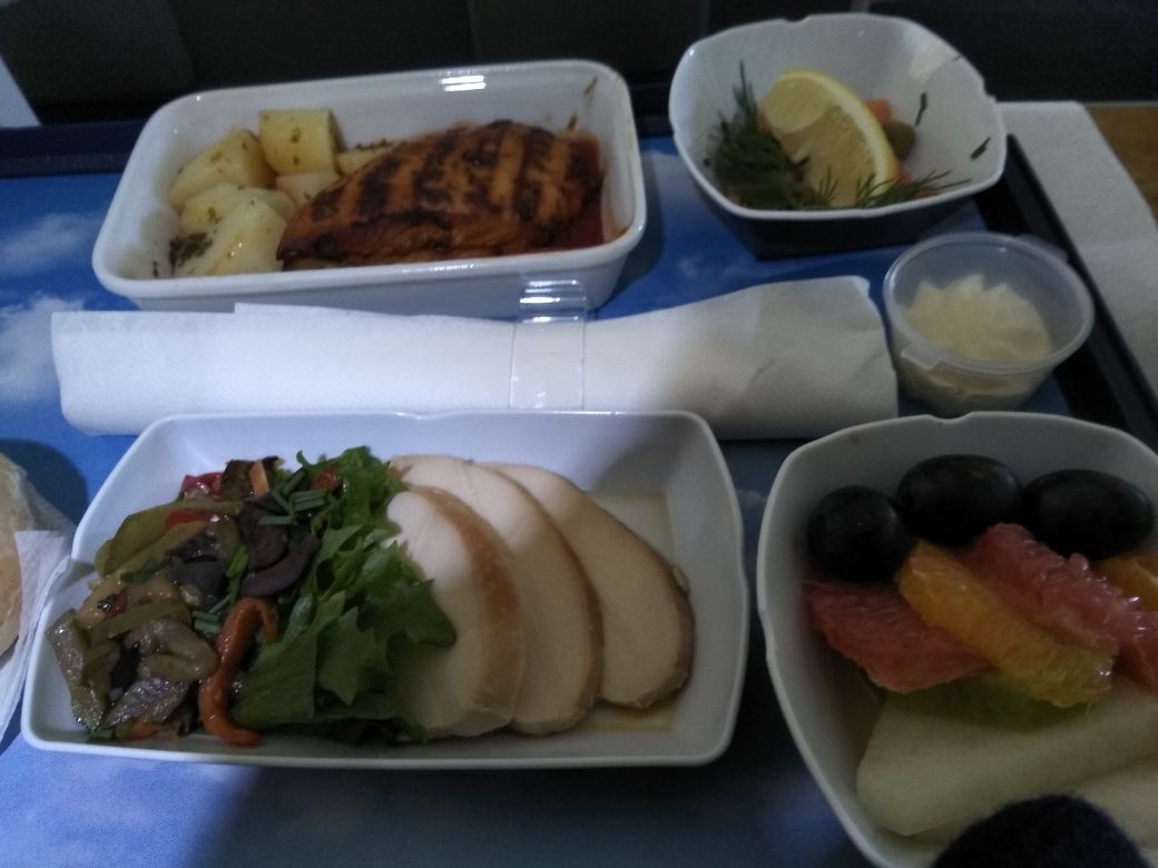 На протяжении 13-часового полета горячее питание подается два раза. Качество еды на высоте, радует и сервировка: в посуде из толстостенного прочного пластика, по весу напоминающего чем-то легкую керамику, с металлическими приборами.
