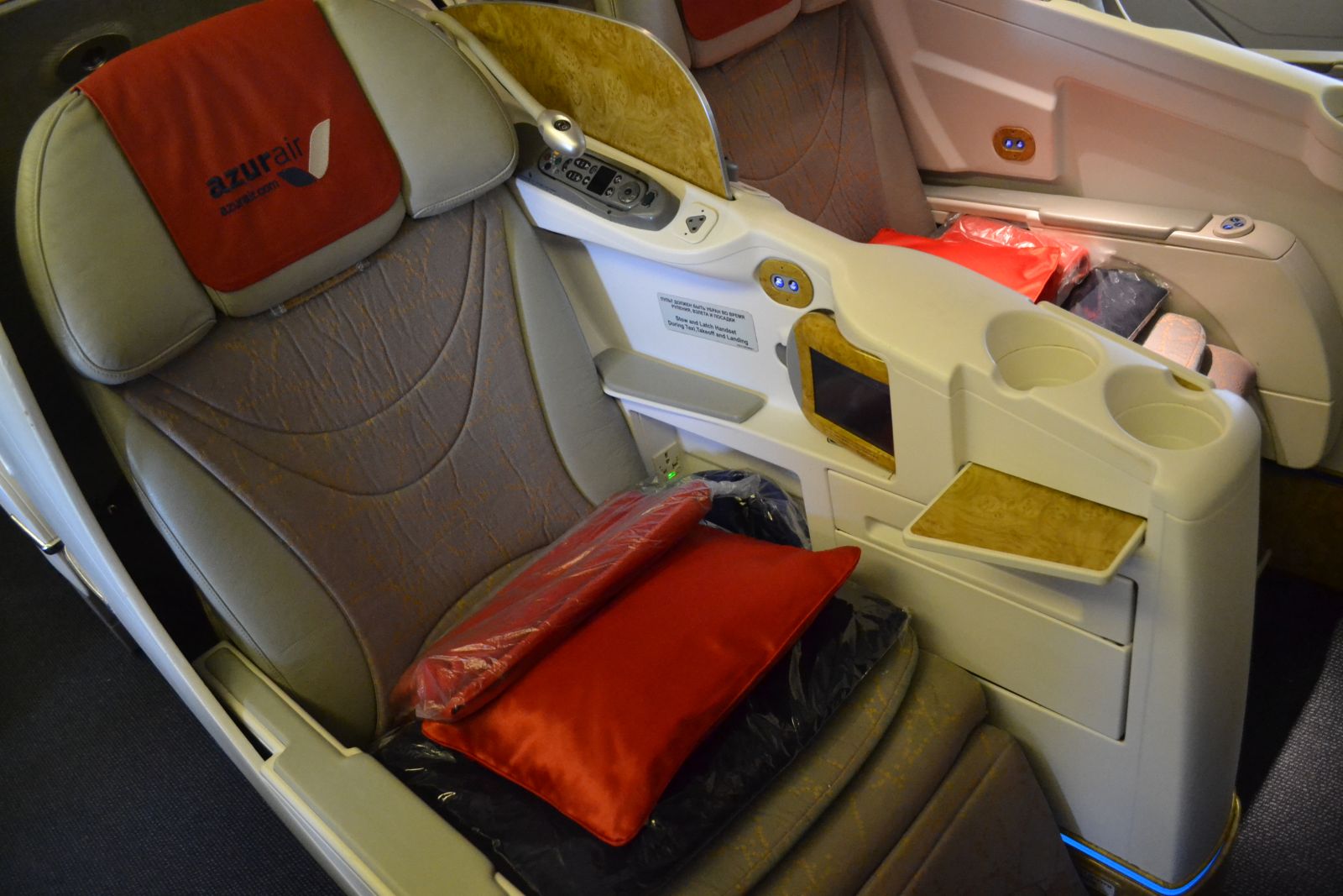 Новый дальнемагистральный борт в AZUR air ранее летал в составе флота Emirates, что уже само по себе говорит об уровне оснащенности салона бизнес-класса.