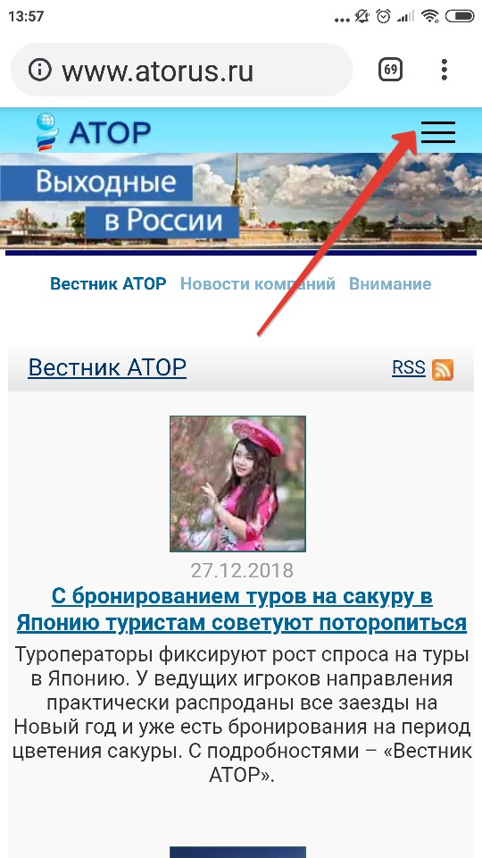 С 27 декабря все читатели интернет-портала Ассоциации туроператоров получили долгожданную мобильную версию. Теперь они могут комфортно читать все материалы сайта АТОР на своих мобильных устройствах. Отвечаем на вопросы о навигации и решении возможных проблем.