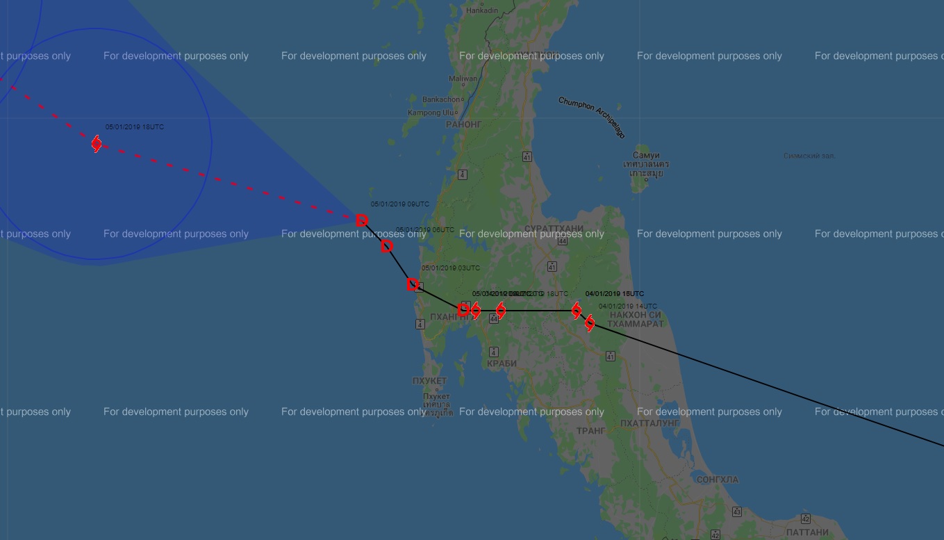 Карта движения «Пабука» после 5 января (метеорологическая служба Таиланда):