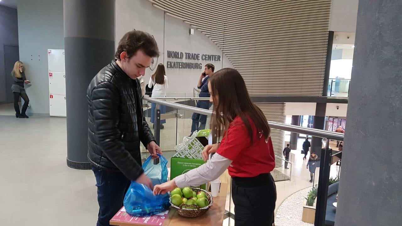 Еще одним востребованным «пунктом обмена» батареек на яблоки стал холл гостиницы «Вега» в Измайлово. В акции активно участвовали как сотрудники, так и гости этого известного отеля; приходили также жители окрестных районов. Не менее людно было в павильоне «Робостанция» на ВДНХ, в современной и стильной музыкальной школе First Music Family на Чистых прудах, в туроператорском офисе BSI Group на Сущевской улице – владельцы этих компаний решили совместить приятное с полезным: не только позаботиться об экологии, но и завлечь потенциальных посетителей и клиентов.