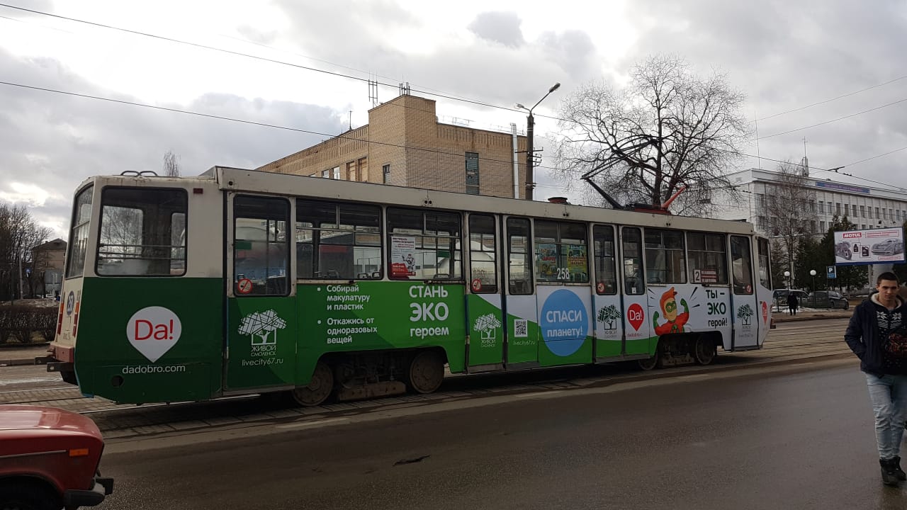 А еще по Смоленску теперь разъезжает эко-трамвай, призывающий горожан заботливо относиться к окружающей среде. Идея запустить социальную рекламу в таком формате пришла в ходе подготовки «Зелёных игр».