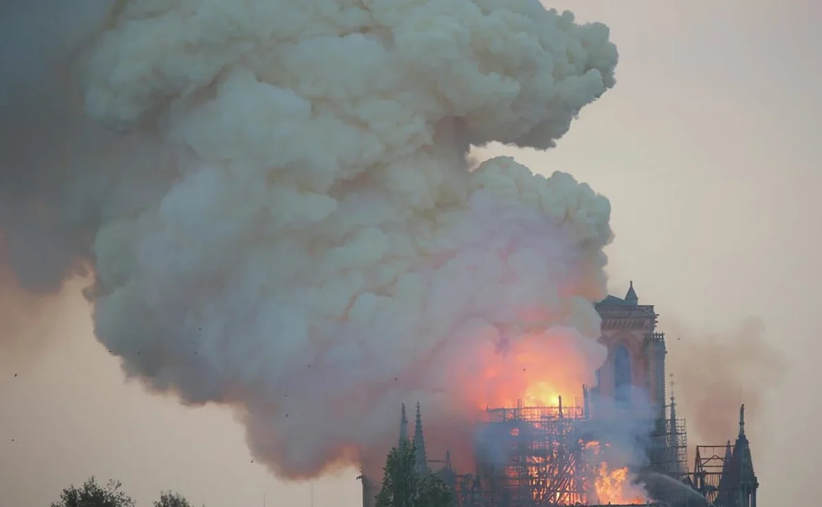 В результате пожара уже обрушился шпиль собора, а также крыша. Огнем охвачены несущие конструкции здания, пишут местные СМИ.