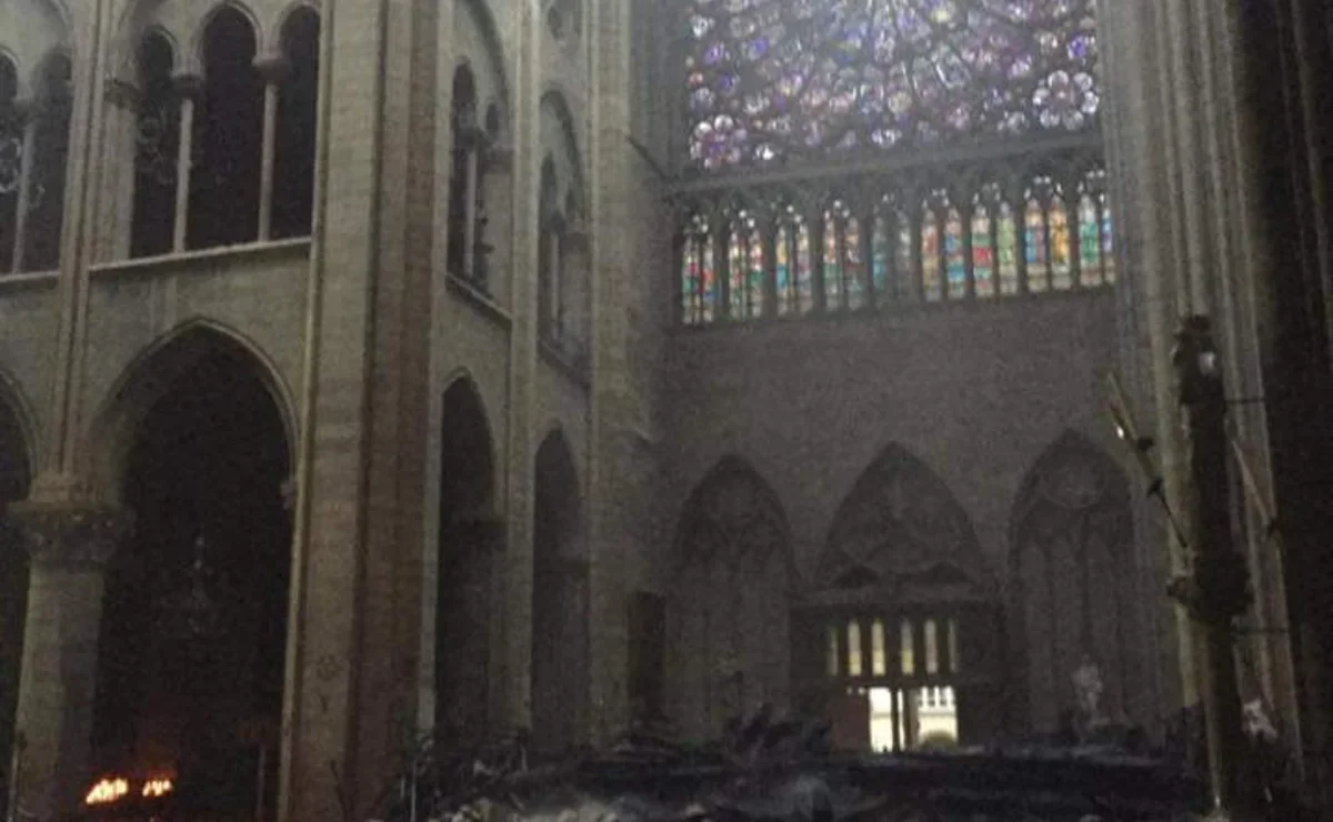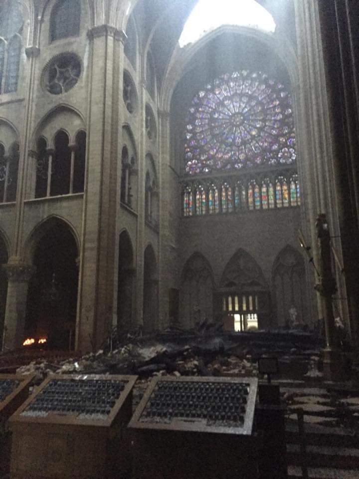 Уцелевшая "Роза" Собора после пожара, фото из Facebook Yann Sinclair