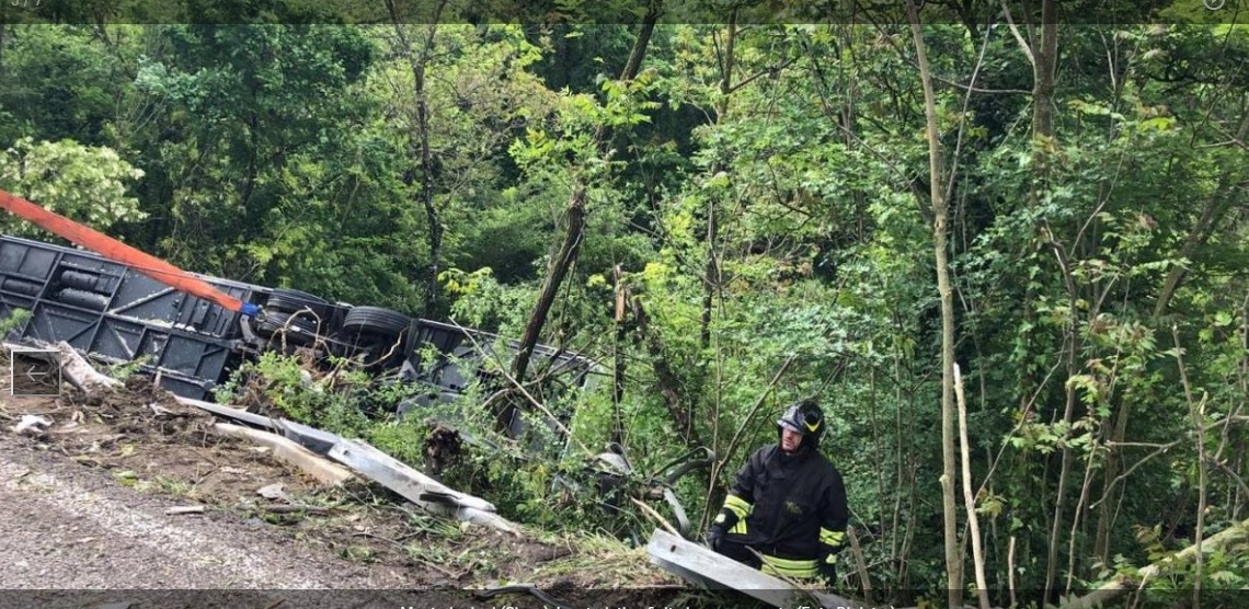 По имеющимся данным, авария произошла на опасном участке шоссе: год назад, 19 мая, на этом же участке с шоссе вылетел и тоже перевернулся рейсовый автобус, следовавший по маршруту Турин – Триест. В результате того ЧП 26 человек получили ранения.