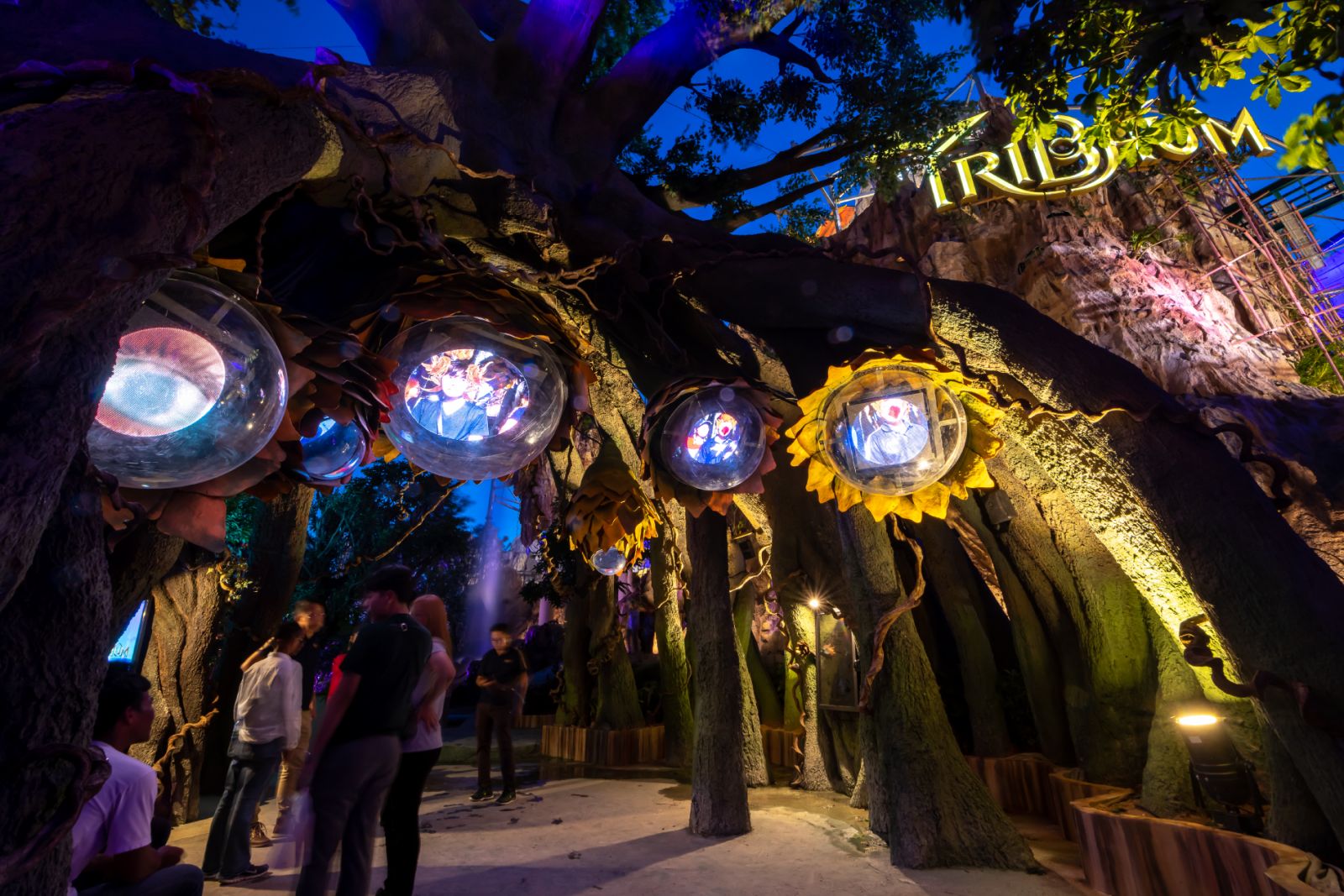 Гости парка смогут прокатиться на виртуальных горках, пройти тропу путешественника по земле и воде, встретиться с мифическими существами и увидеть настоящих светлячков. Кроме тематических площадок, в Tribhum стоит посетить летающий театр и пройти по стеклянному мосту Crystal Path на высоте 20 метров.
