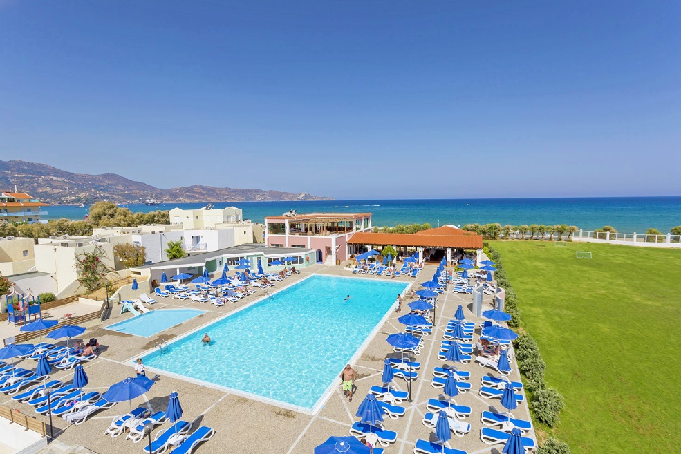 Особенности: Отель обладает своей неповторимой и чарующей атмосферой истинного греческого гостеприимства, при этом очень активный: на территории 2 открытых бассейна: 1 с пресной водой, 1 с морской. В течение дня проводится дневная спортивно-развлекательная программа. Вечером шоу, живая музыка или караоке. Большой спектр услуг для детей: мини-клуб, мини-диско, игровая площадка, бесплатная аренда детских колясок. Wi-Fi на всей территории бесплатно.