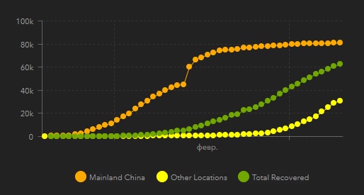Из этого количества к настоящему моменту благополучно излечилось от этой похожей на грипп болезни уже 62 375 человек, или 56% от всех случаев в мире. Причем доля выздоровевших растет, несмотря на новые случаи: еще 4 марта процент выздоровевших был равен 54%.