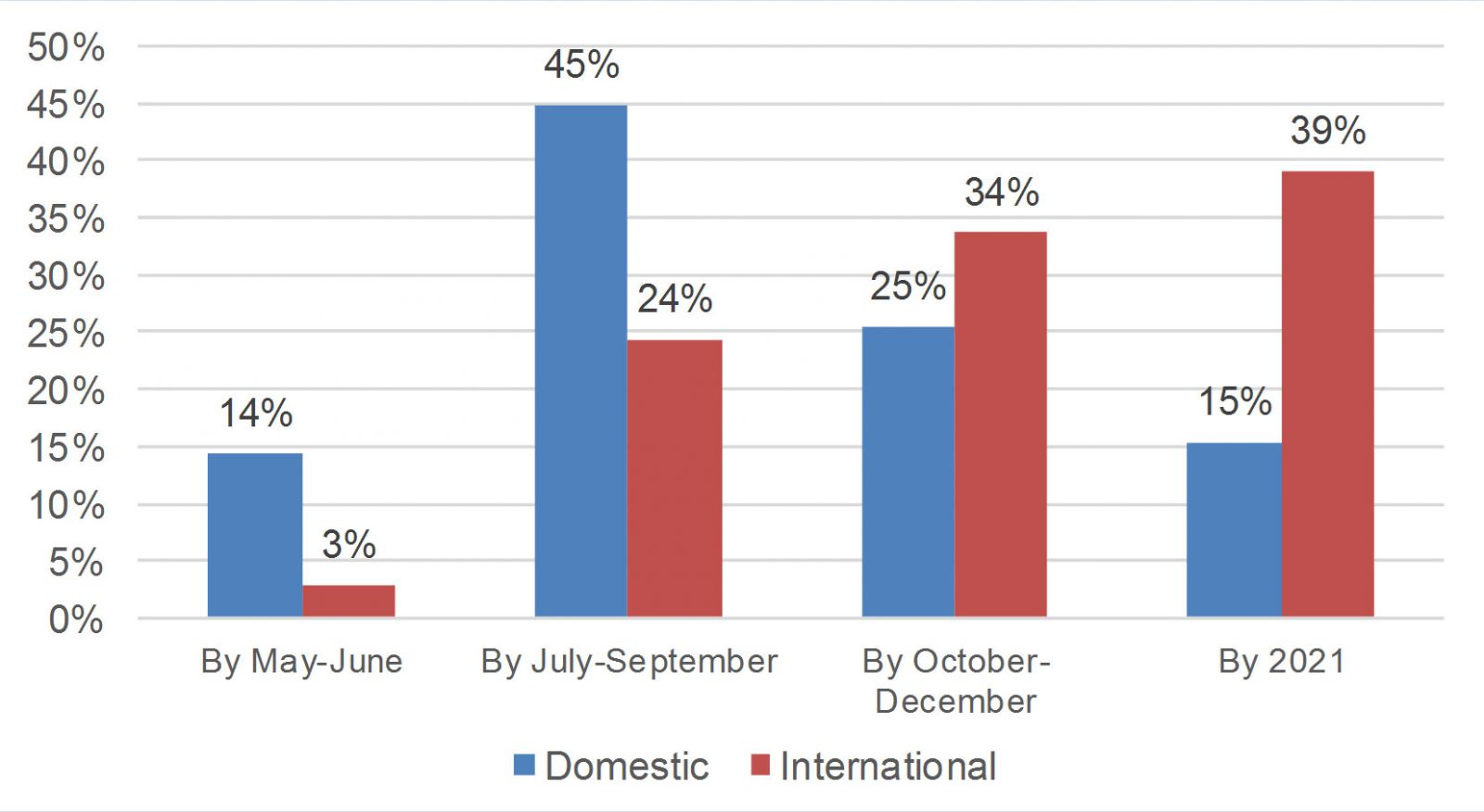 Большинство стран ожидает увидеть признаки восстановления спроса к зарубежным поездкам в последнем квартале 2020 года, но в основном надежды возлагаются на 2021 год.