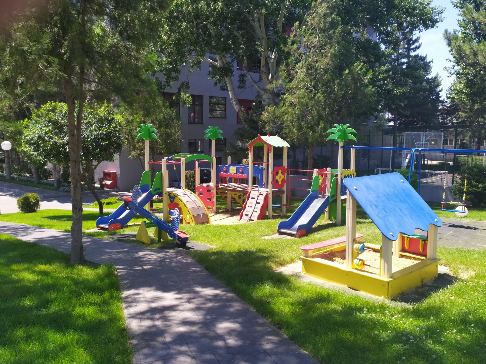 На территории отеля – удобная детская площадка (что важно, днем она в легкой тени).