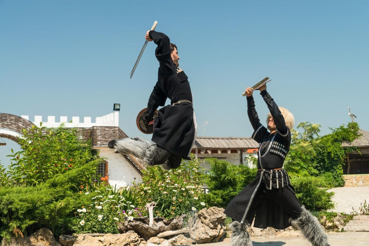 Это вечерняя экскурсия, которая больше подходит для взрослых. Недалеко от п. Фадеево (ок. 40 минут езды от Анапы) располагается реконструированный «кавказский замок», в котором проходит красочное этно-шоу с застольем.