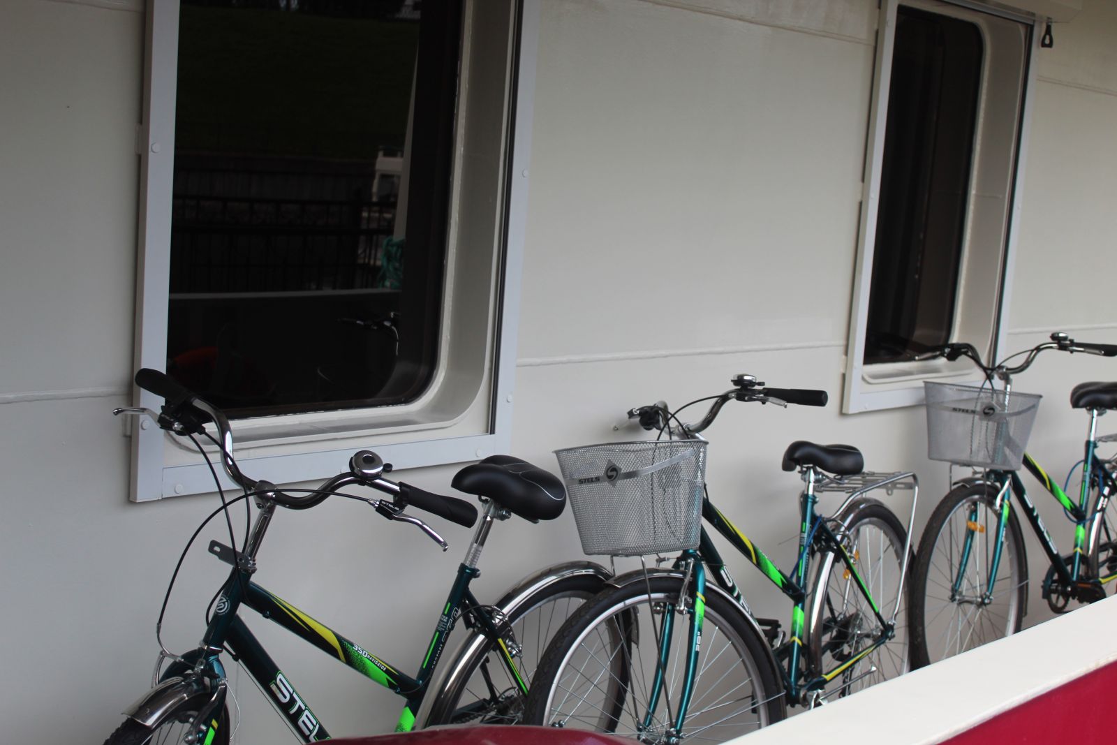 Организовать тур по городу можно и самостоятельно, например, взяв на борту теплохода велосипеды, скандинавские палки или стулья-трости. Стоимость аренды небольшая – велосипед на 3 с лишним часа обойдётся всего лишь в 300 руб. в час, а стул-трость на такой же период – 100 рублей в час.