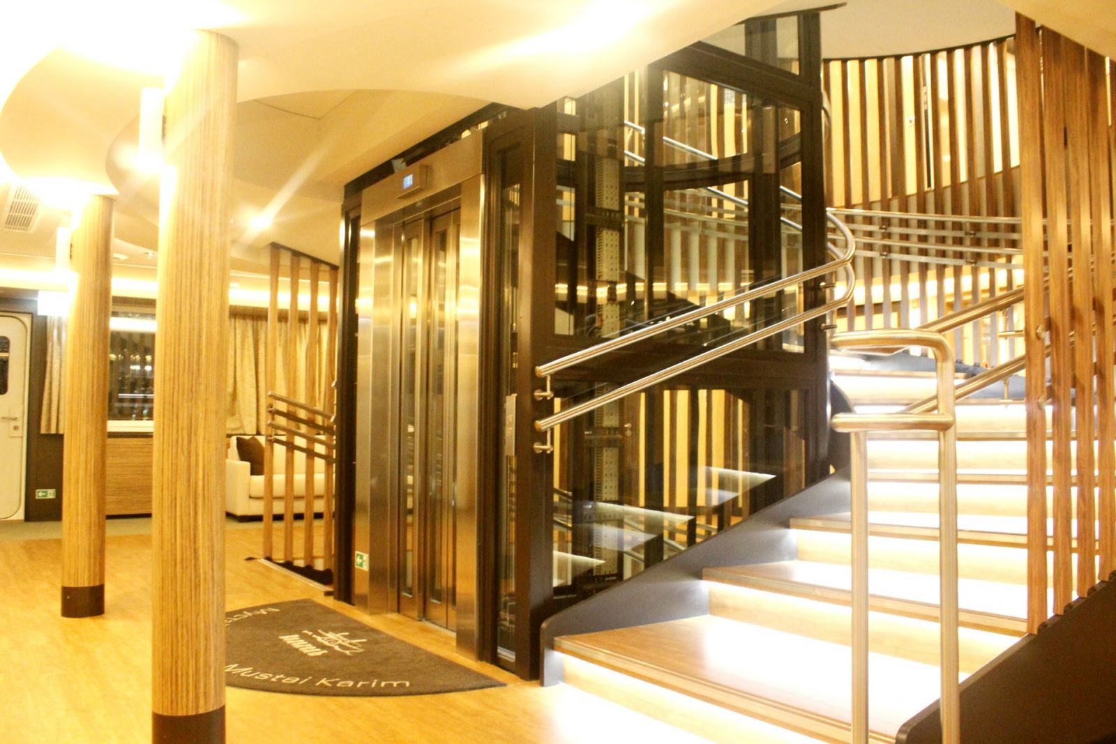 Современный дизайн судна выразился в том, что «Мустай Карим» приравнивается к уровню пятизвёздочного отеля и спроектирован по принципу гостиницы на воде. Все его 5 палуб открыты для туристов, на лайнере имеется 2 лифта, а трапы заменены удобными лестницами, так что можно не держаться за перила.