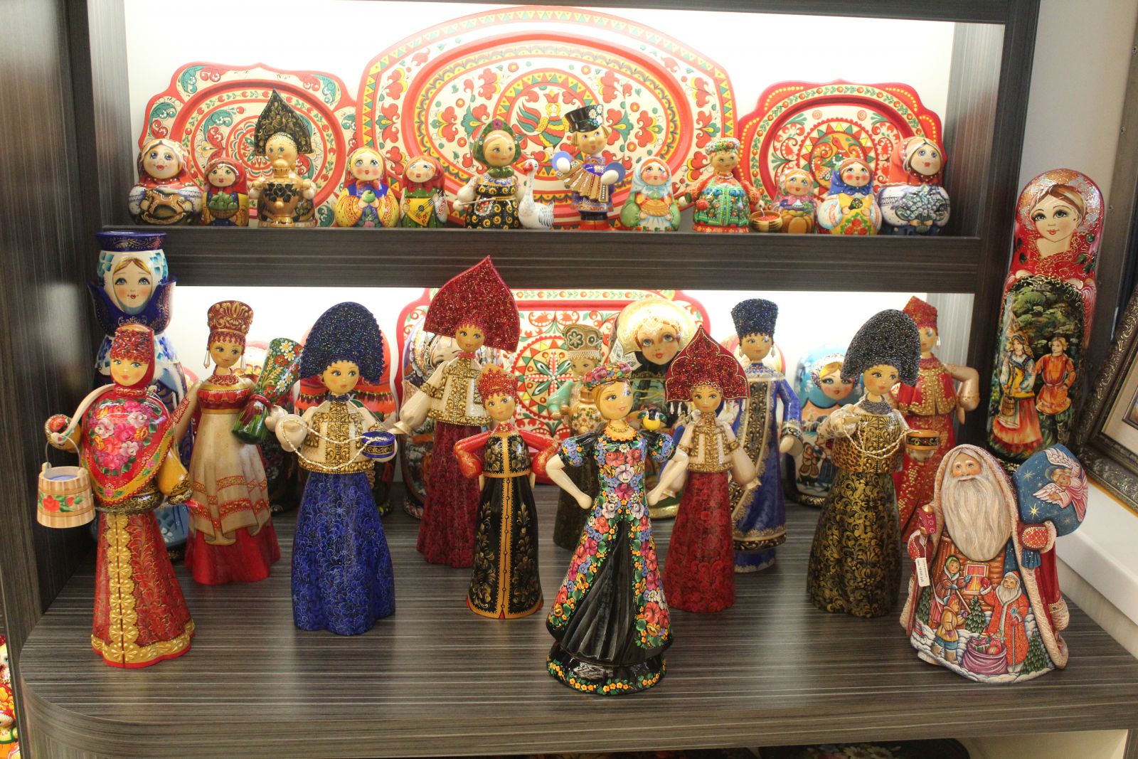 Магазин сувениров также предлагает каждый день новые интересные мини-выставки с лекциями и презентациями уникальных сувениров. Это уральские самоцветы, янтарь, финифть, шали, авторские куклы и даже артефакты из бивня мамонта.