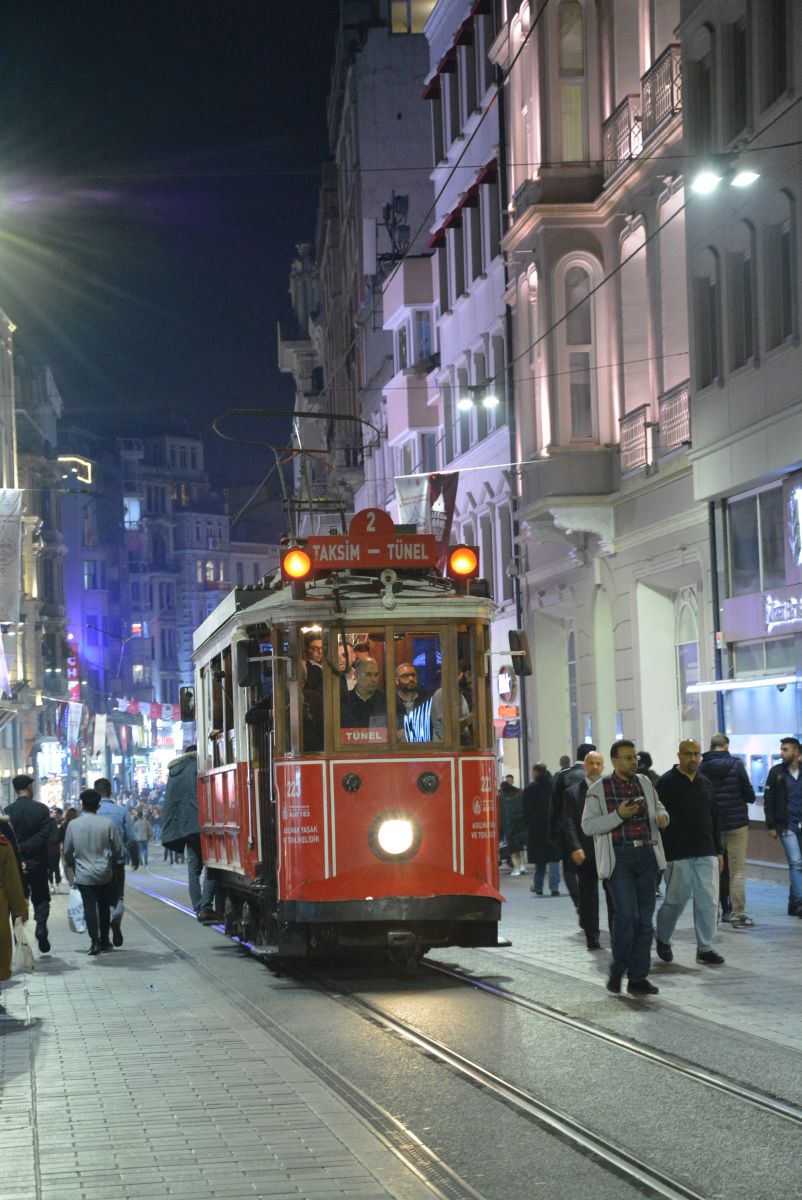 Самая фотографируемая достопримечательность улицы Истикляль – это, пожалуй, исторический красный трамвайчик, на котором катаются туристы до площади Таксим.