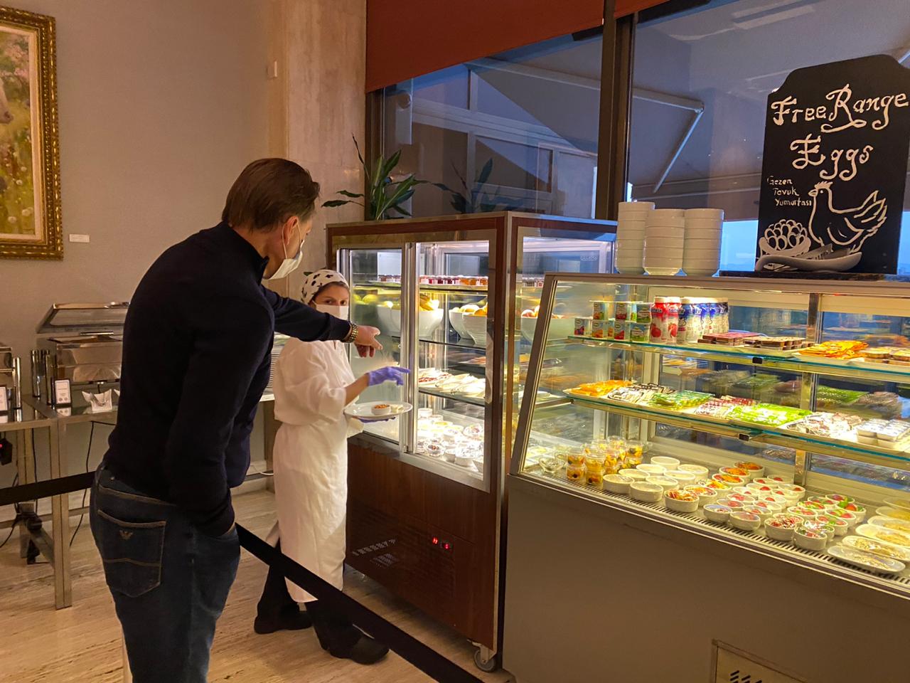 Система «шведский стол» действует, но гости не имеют непосредственного доступа к блюдам – так же, как и на курортах Антальи. Гости отеля выбирают блюда, но подают их сотрудники ресторана.