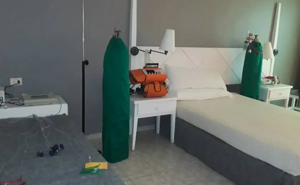 Как видно на фотографиях, в номерах, где размещены туристы с COVID-19, есть необходимое медицинское оборудование, в том числе, баллоны с кислородом, медикаменты, средства индивидуальной защиты.