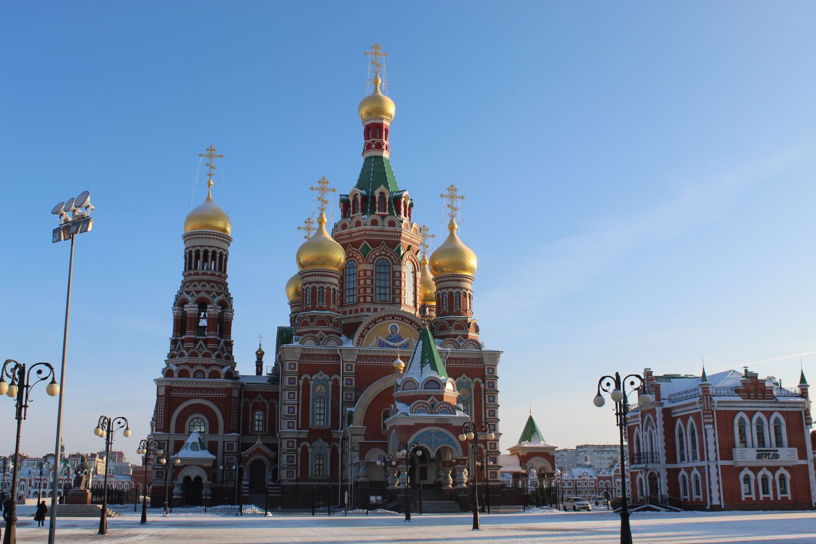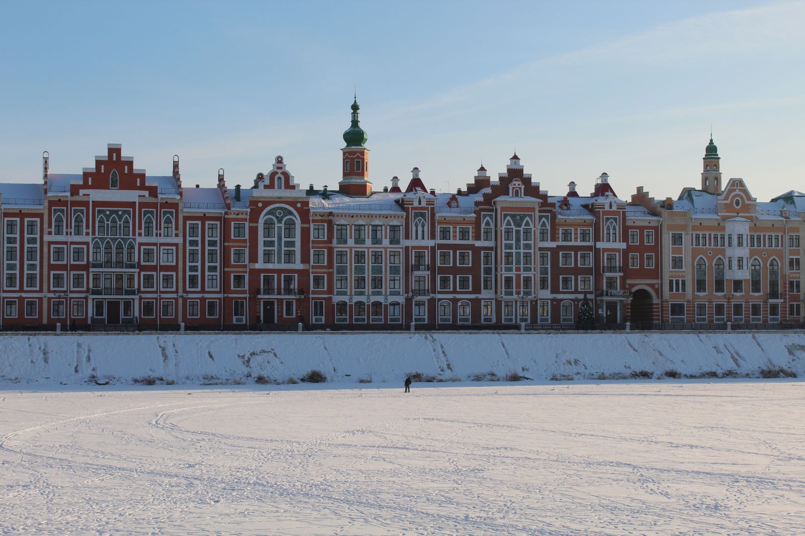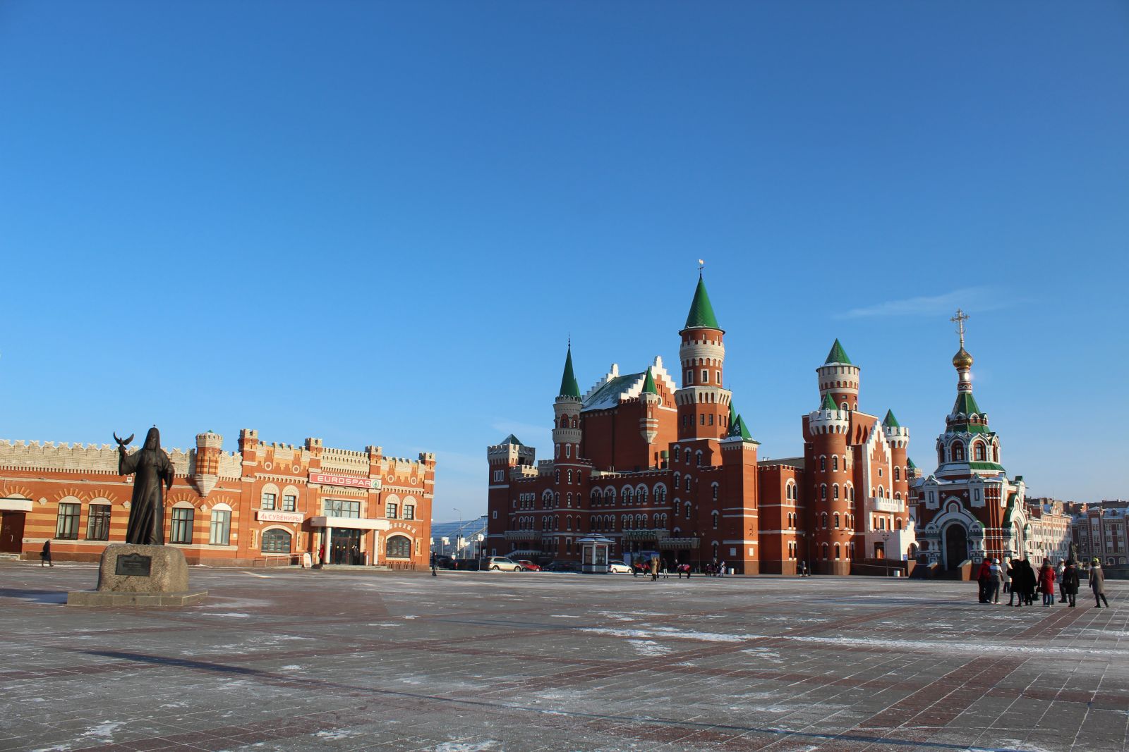 Еще одна туристическая точка притяжения современной Йошкар-Олы - Патриаршая площадь и квартал вокруг нее, который был построен в начале «нулевых» на берегах реки Малая Кокшага.
