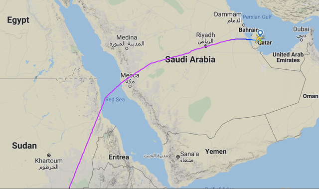 Так, авиамаршрут из Дохи в Йоханнесбург с 7 января опять проходит прямо над Эр-Риядом и к северу от Мекки.