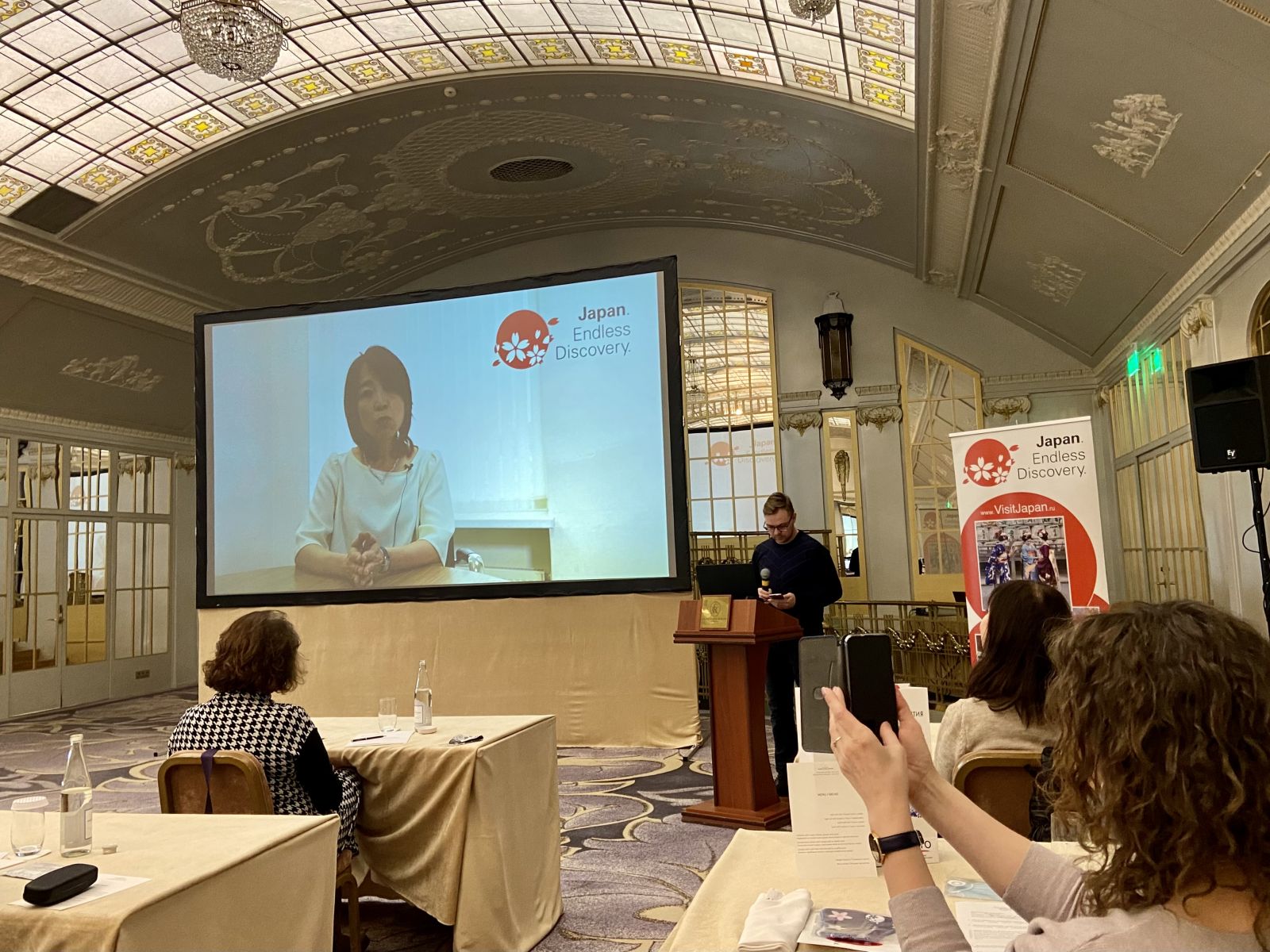 С приветственным словом в видеообращении к гостям обратилась руководитель московского представительства JNTO Айри Мотокура. Она отметила, что Япония пока не принимает туристов, но в эти непростые для всех времена JNTO не «сидит сложа руки», а активно работает».