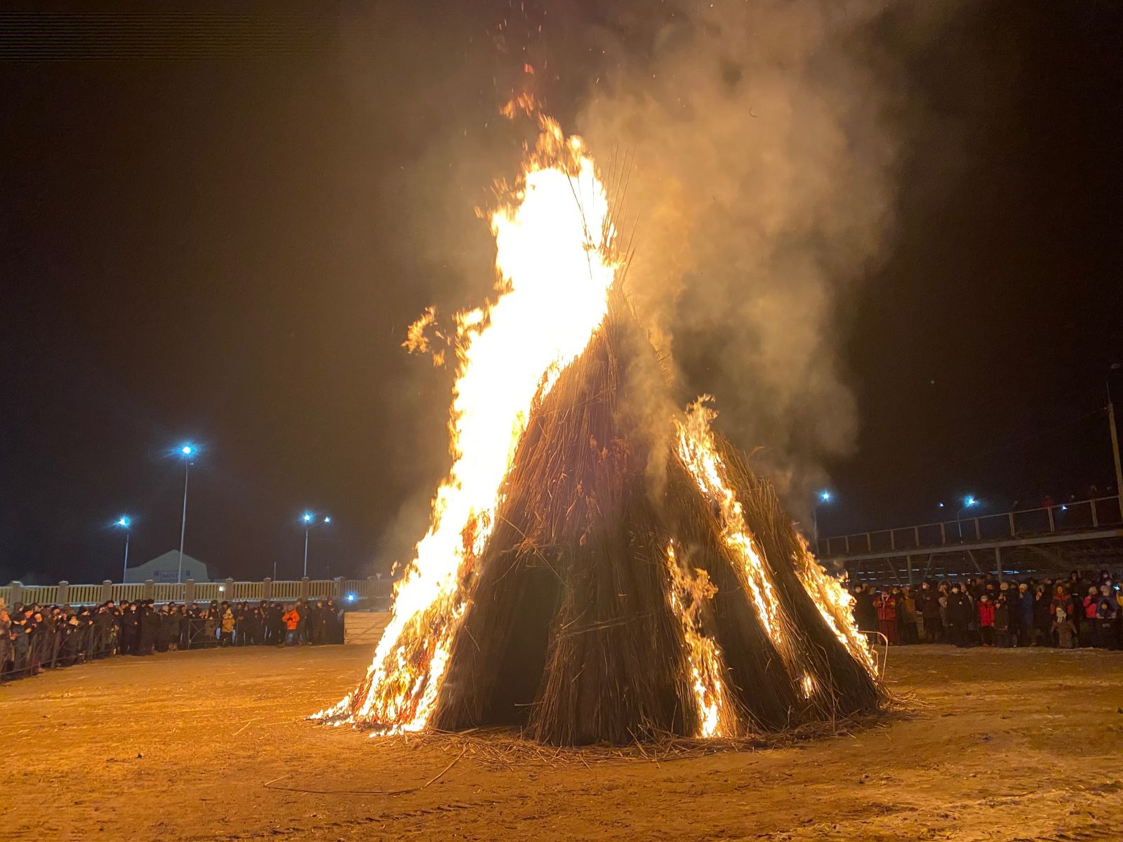 Костра на самом деле два. В одном горят куски теста, которые принесли и подготовили заранее люди. Они прислоняли тесто ко лбу, шее и груди и другим участкам тела, как бы передавая тесту все свои болезни и беды. В главном же костре заложены подношения просветленному хозяину ада – Чойжилу Сахюусану, который и должен забрать все плохое.