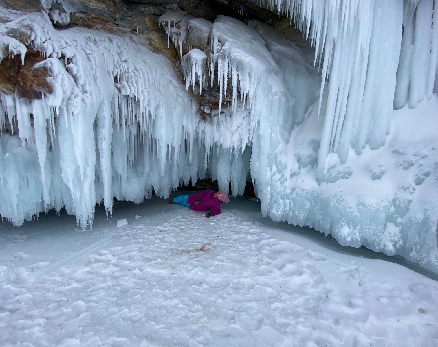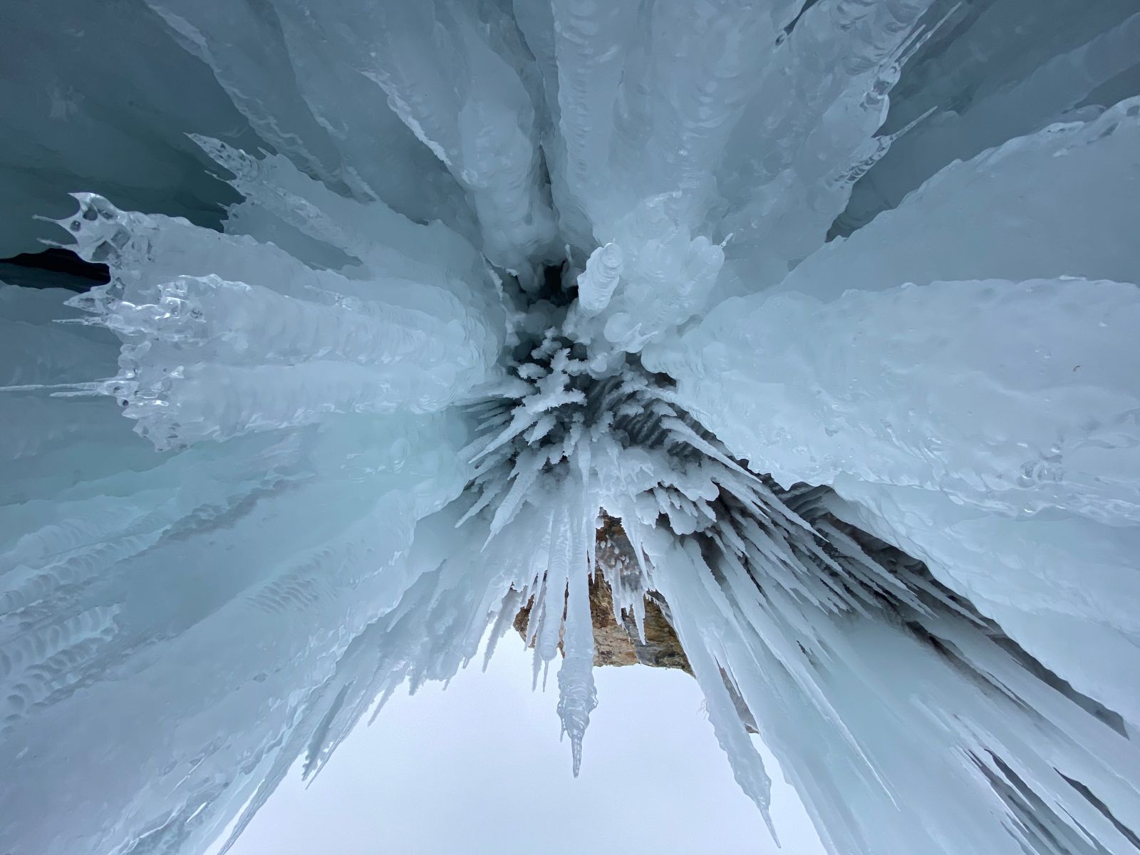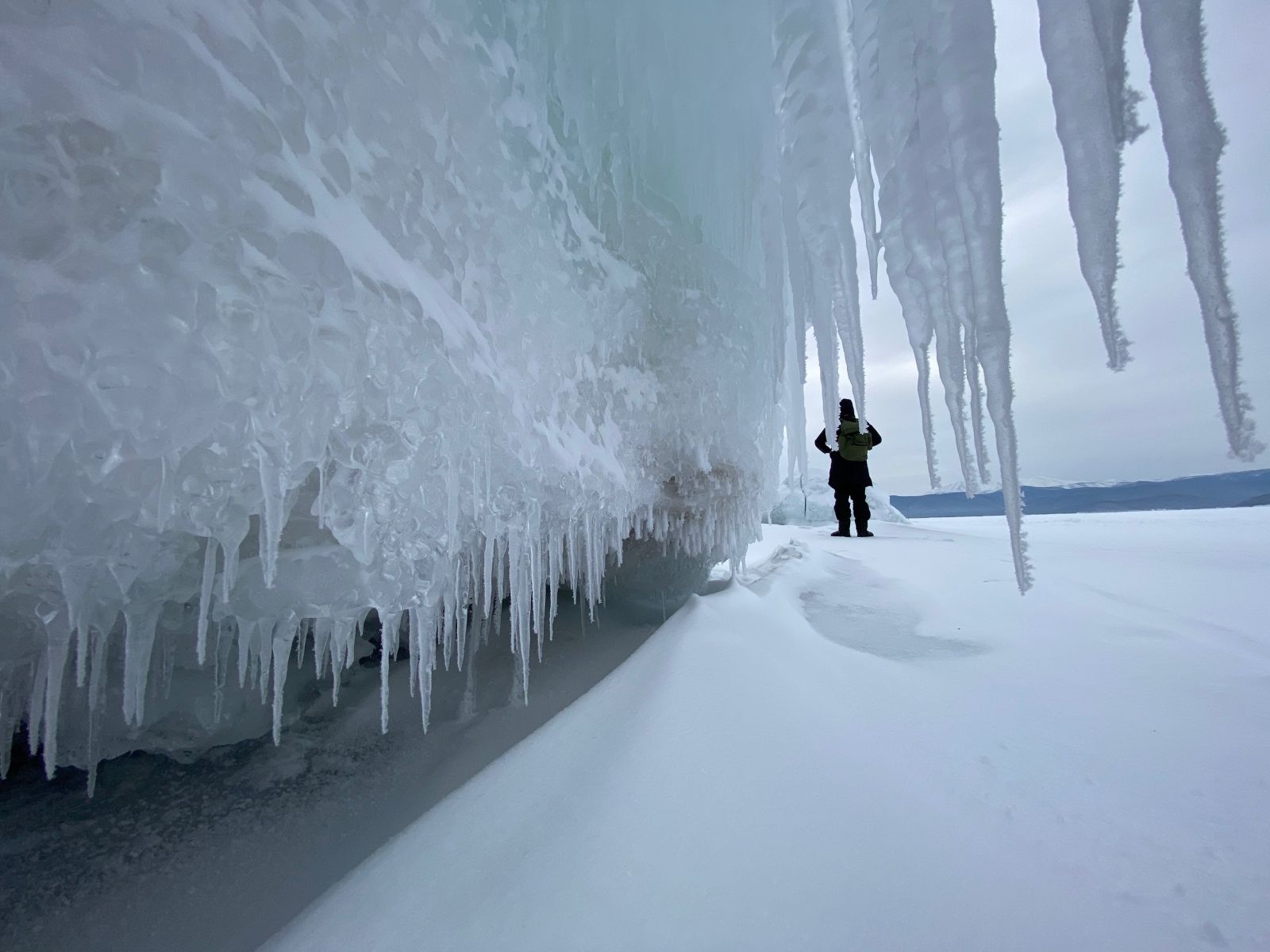 Помимо купания в источниках, целый калейдоскоп эмоций подарили скалы, по всей высоте украшенные ледяным кружевом, пещеры с сосульками всевозможных форм и размеров и легендарный байкальский лед, идя по которому, возникает иллюзия, что под ногам тончайшее хрупкое стекло.