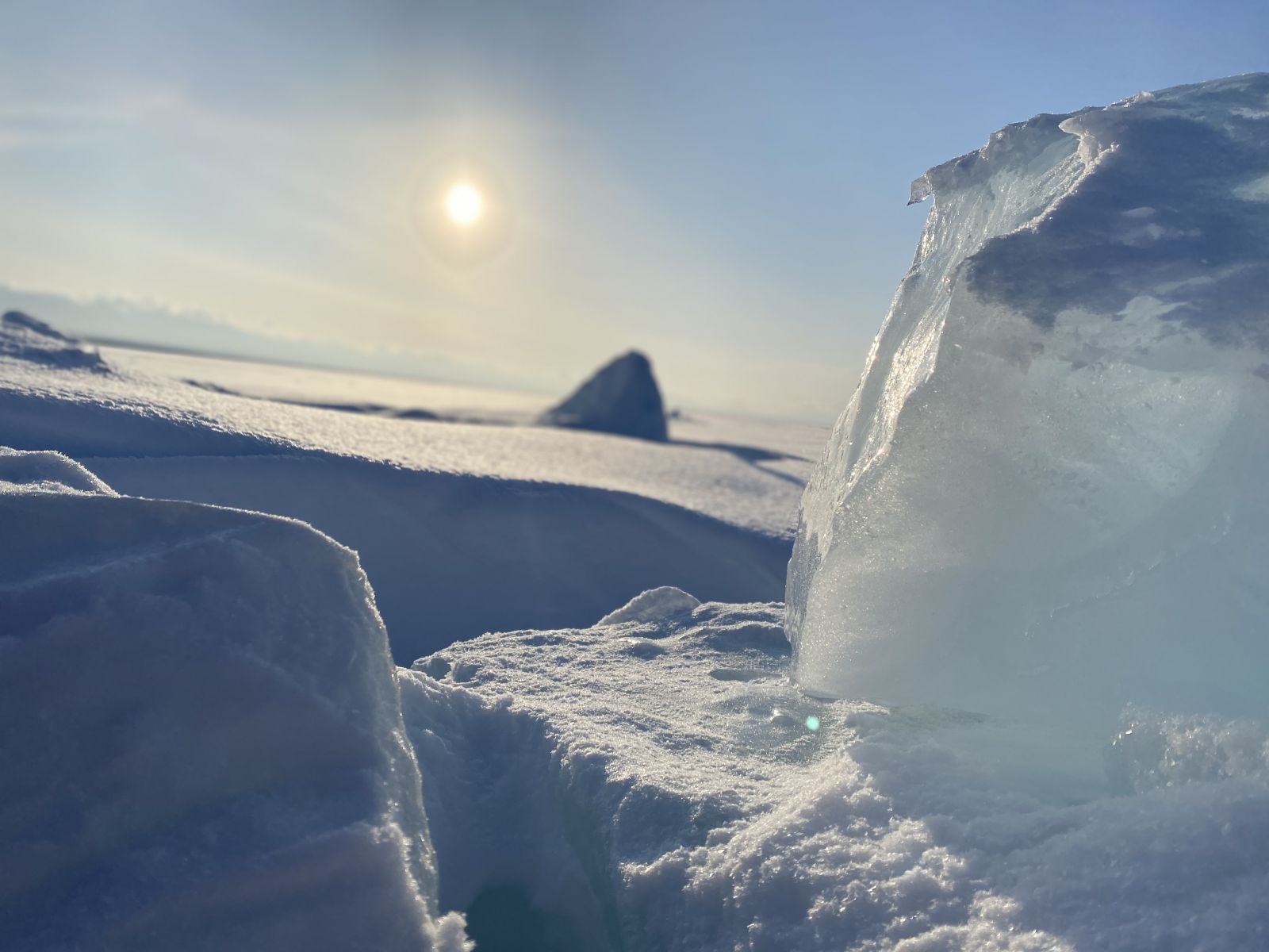 Кстати, очень красивый лед и торосы на Байкале со стороны Байкальского национального парка. Наблюдая за жизнью Байкала там, мы даже не заметили, как наступил закат.