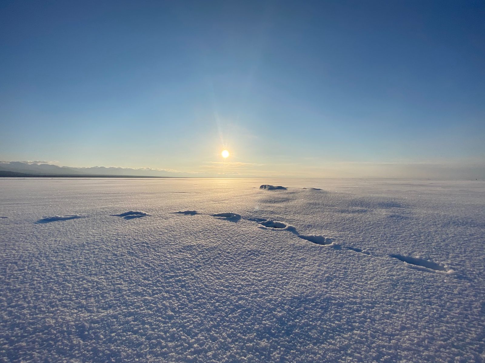 Казалось бы, Байкал спит, укрыт ледово-снежным одеялом. Но, присмотревшись, понимаешь, что он еще как бодр, он чувствует, понимает и готов общаться. Тут как нигде ощущается вечность и здесь звенящая тишина. При этом складывается такое чувство, что все звуки собрались в этой тишине, чтобы порадовать самое большое пресноводное озеро Земли.