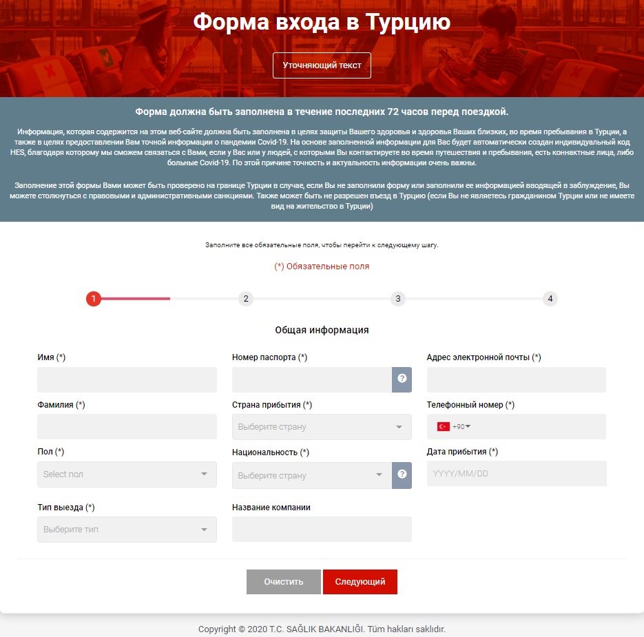 Ссылка на анкету на сайте Минздрава Турции является рабочей (мы проверили ее):