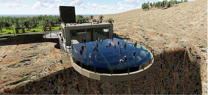 Со стеклянной террасы будет открываться панорамный вид на Евфрат и древнюю крепость Румкале. Площадь, покрытая стеклом, составит 327 кв. м, 270 кв. м из которых будет нависать над крутым берегом Евфрата на высоте около 100 м. По площади стеклянная смотровая в Месопотамии войдет в ТОП-5 самых больших в мире (самая большая стеклянная площадка – в Китае).