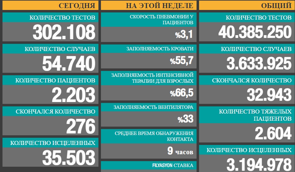 Данные о нагрузке на систему здравоохранения публикуются на сайте Минздрава Турции.