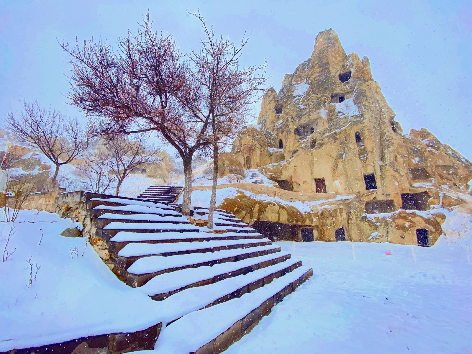 В Каппадокии, природном чуде света, трудно избавиться от наваждения: кажется, что очутился на другой планете. Причудливые пейзажи, многоуровневые подземные города и пещерные храмы первых христиан, жилые дома, вырубленные в гигантских каменных пирамидах из вулканических пород. Образования высотой до 40 метров появились тысячи лет назад в результате извержения ныне спящего вулкана Эрджиес, где сейчас функционирует одноименный горнолыжный курорт. Большинство новых домов и отелей и сейчас продолжают сооружать в туфовых скалах.