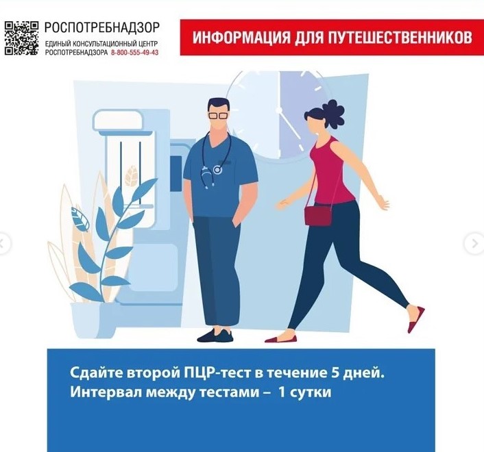 Далее, согласно инструкции Роспотребнадзора, первый тест на коронавирус необходимо сдать в течение трех дней с момента прибытия. Второй тест на COVID-19 должен быть сдан в течение 5 дней. Интервал между двумя тестами – 1 сутки.