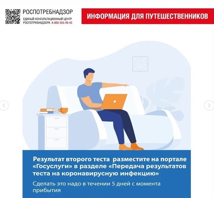 Первый тест надо загрузить на Госуслуги не позднее трех суток после прибытия, второй – не позднее 5 суток.