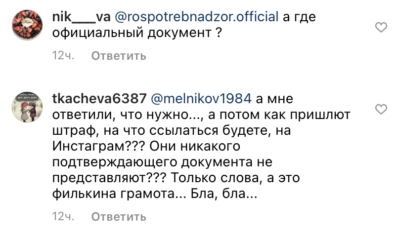 «С каких пор инстаграм стал давать официальные ответы? В суде потом оправдываться: «Мне в инстаграме написали?» – комментирует ситуацию другой пользователь.