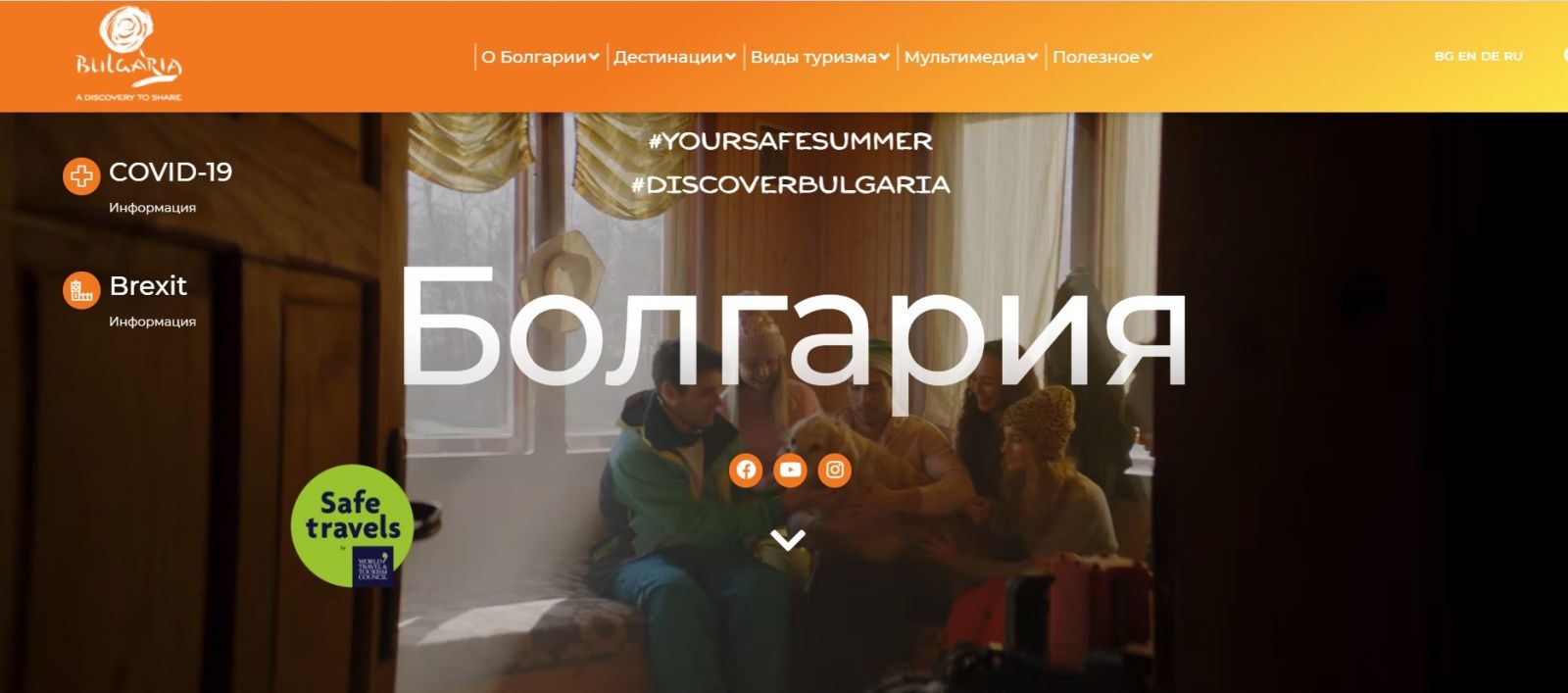 Национальный туристический портал предоставляет информацию на четырех языках, включая русский язык. На платформе собраны материалы о всех видах отдыха в Болгарии, а также опубликованы рекомендации по путешествиям в связи с COVID-19. В том числе размещены Правила проведения противоэпидемических мероприятий на туристических объектах в летний сезон 2021 года.