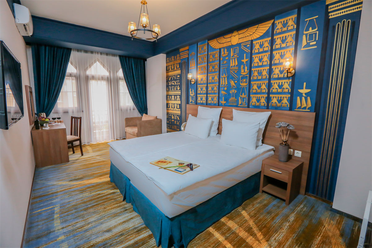 У отеля не только интересное архитектурное решение в виде башни (кстати, в ней работает единственный во всей Гагре панорамный внешний лифт), но и приятный оригинальный внутренний дизайн: номера на каждом этаже отделаны и обставлены по-разному, в них много элементов ручной работы, на которые отель делал спецзаказ.