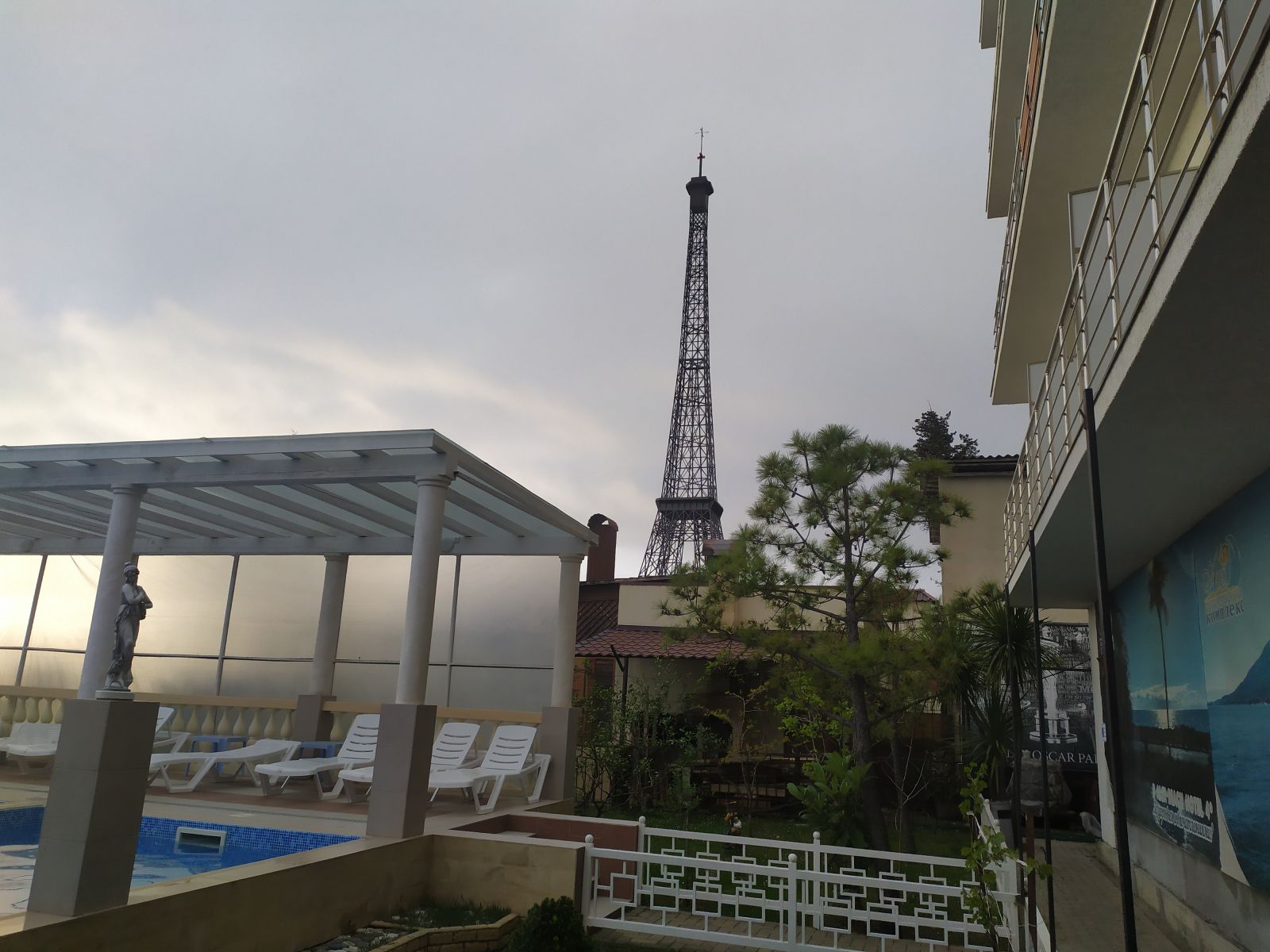 Очень оригинально обновлено пространство между детским клубом и баром «Хемингуэй»: между ними на территории отеля теперь высится мини-копия Эйфелевой башни, которая видна издалека и станет, несомненно, новой достопримечательностью Гагры.