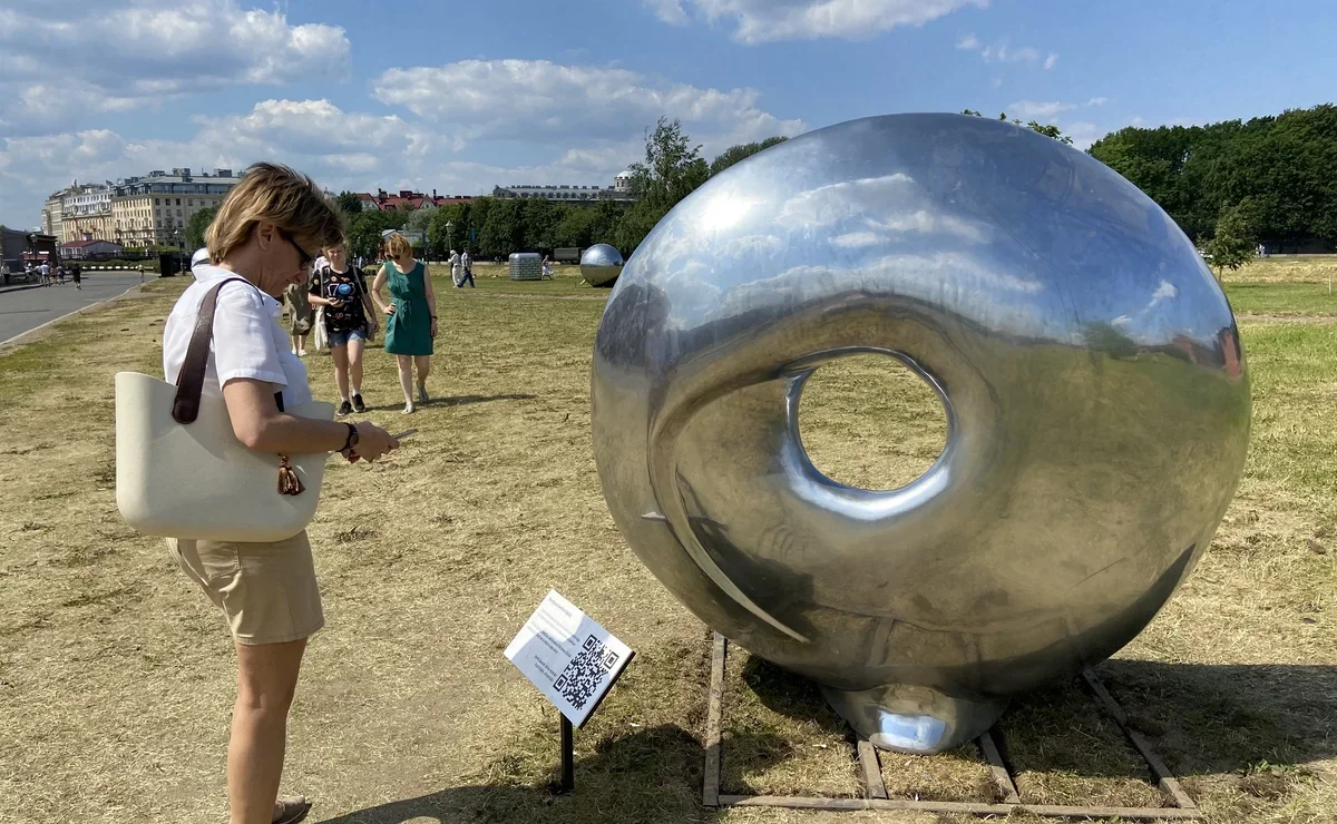 Единственная работа, не имеющая конкретного авторства, посвящена Петербургу – это большой зеркальный шар, в котором отражаются другие объекты.