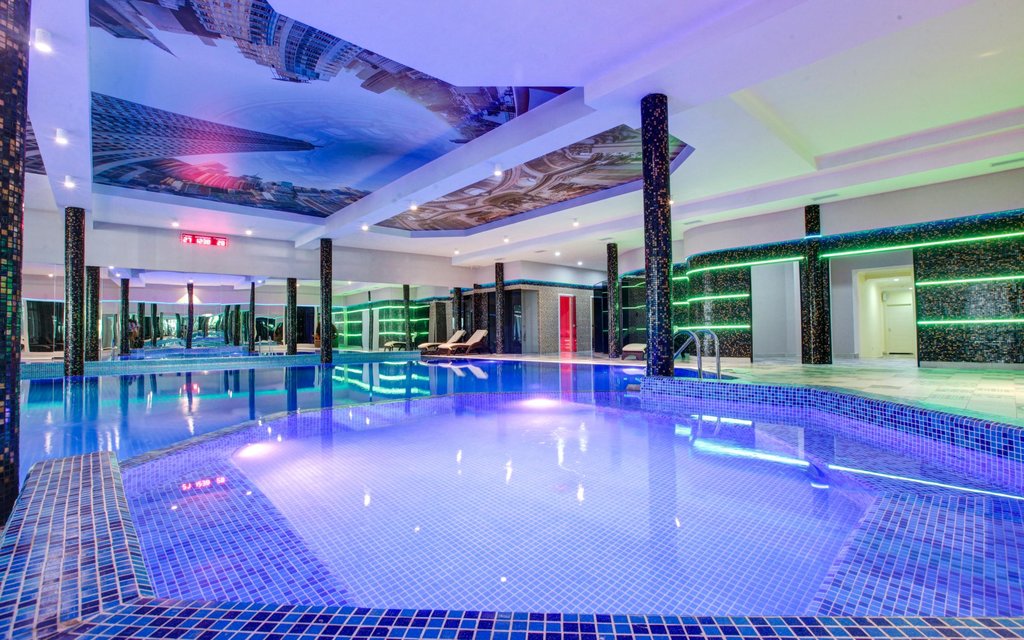 ОСОБЕННОСТИ И ПРЕИМУЩЕСТВА: Семейный отдых с детьми, отдых для взрослых. Фишки отеля: проводятся пенные вечеринки, есть боулинг на 4 дорожки, бильярд, караоке, прекрасный СПА центр и современный тренажерный зал, собственный кинотеатр на 80 мест, три бассейна, включая крытый длиной 25 метров, и открытый, прогреваемый круглый год до 28 градусов. Есть хорошие рестораны (русская кухня и гриль меню)