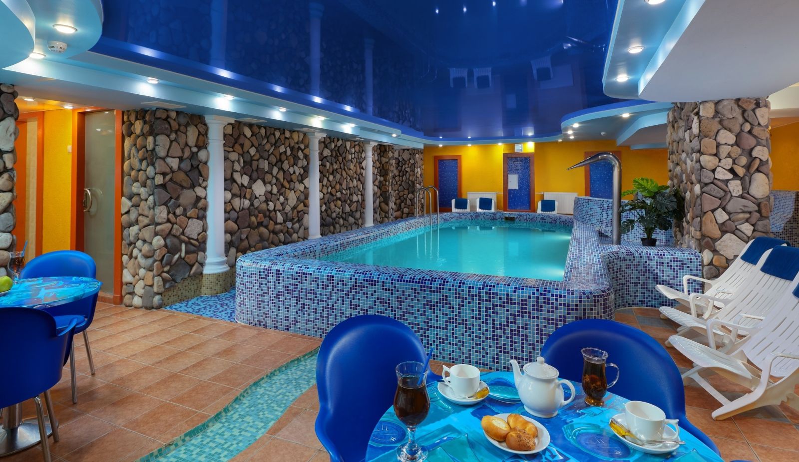 На территории есть: СПА-салон (более 70 видов разнообразных процедур по уходу за лицом и телом, комплексных программ по талассо- и бальнеотерапии, эксклюзивных этнических методик оздоровления и массажей), аюрведические процедуры, аквафитнес для беременных, русская баня с бассейном, финская сауна с гидродорожкой (противоток), ночной клуб "Максимус".