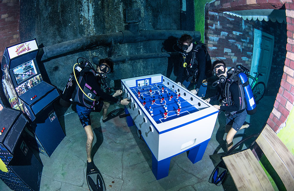 Те, кто не занимается дайвингом, могут наблюдать за погружением друзей и близких во встроенном ресторане комплекса.