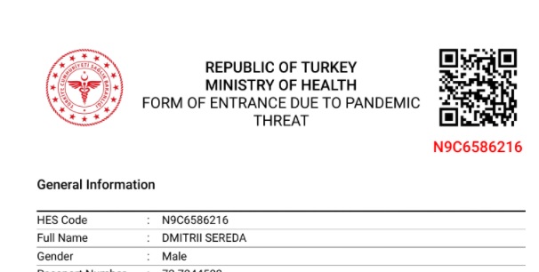 Да, и еще: никаких бумажных анкет в самолете, следующем в Турцию, вас заполнять больше не попросят. Все это заменяет HES-код.
