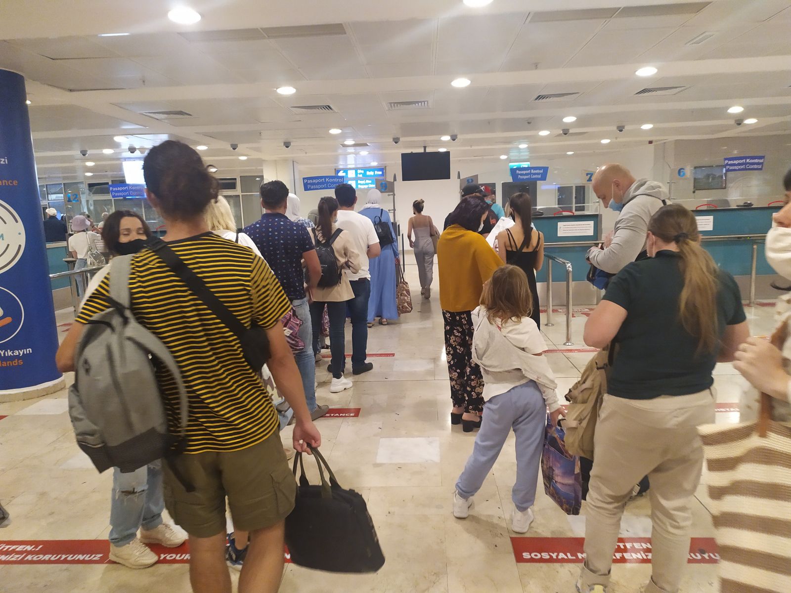 В аэропорту Антальи на погранконтроле не так много народа, как в прошлые годы, все процедуры проходятся достаточно быстро. Как мы помним, ПЦР-тесты и HES-коды пограничникам в Турции не требуются. У нас от выхода из самолета до выхода из аэропорта прошло не больше получаса.