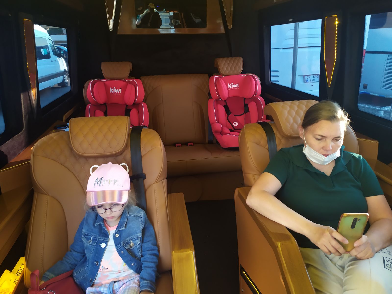 Новенький микроавтобус с кожаным салоном, кондиционером, ТВ, напитками уже ждал нас в аэропорту и с комфортом доставил всю семью в отель в Аланье всего за 1 час 30 минут (вместо 4 часов). Согласитесь, для детей это особенно важно.