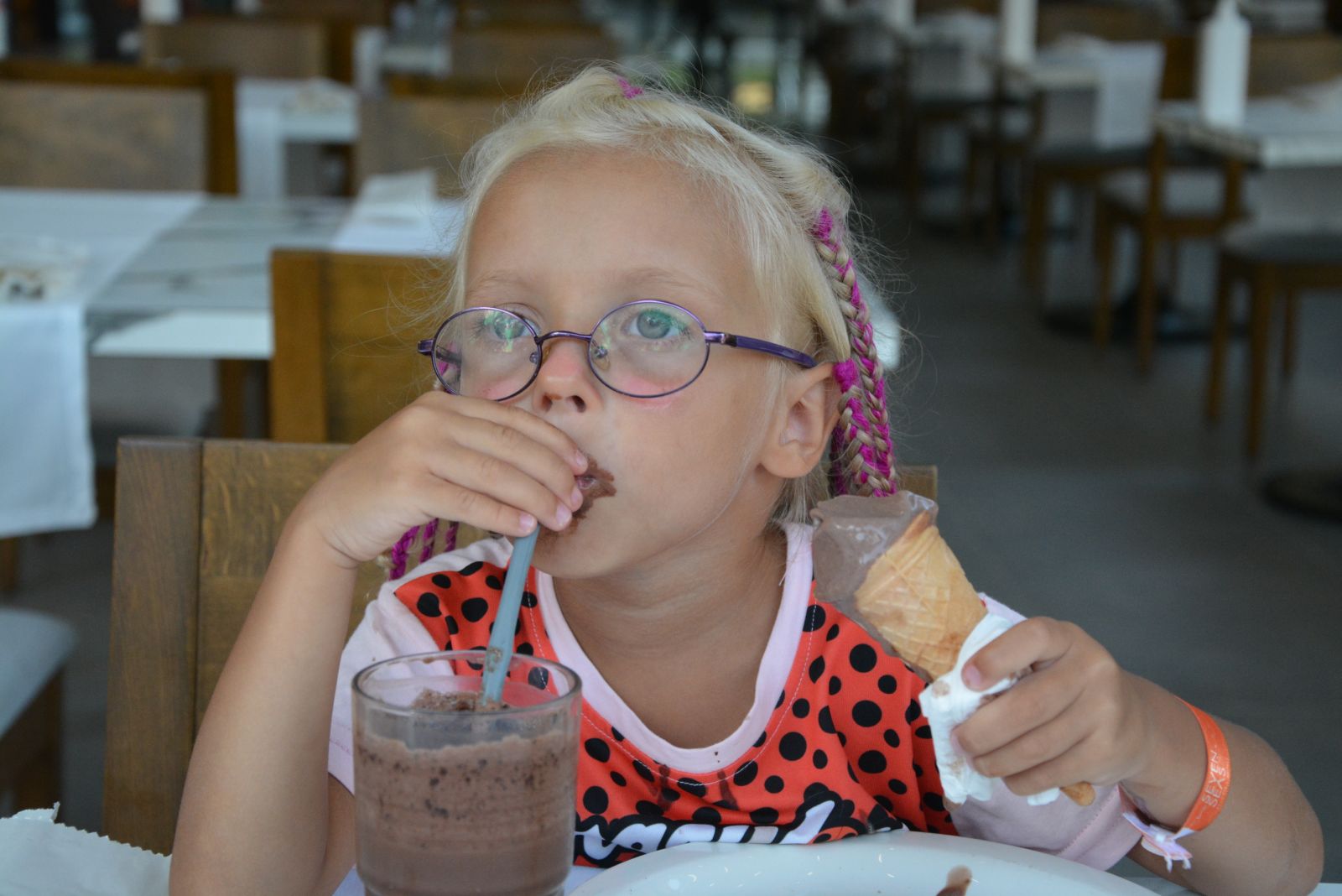 Кстати, для совсем маленьких детей есть и отдельный детский ресторан с красочной детской мебелью и «детсадовским» классическим меню: картофельное пюре, паровые котлеты, супы, мюсли, молоко и пр. Наша консервативная в еде младшая дочь ела в основном блюда из него, а вот для старшей восьмилетки была уже интересна взрослая кухня отеля.
