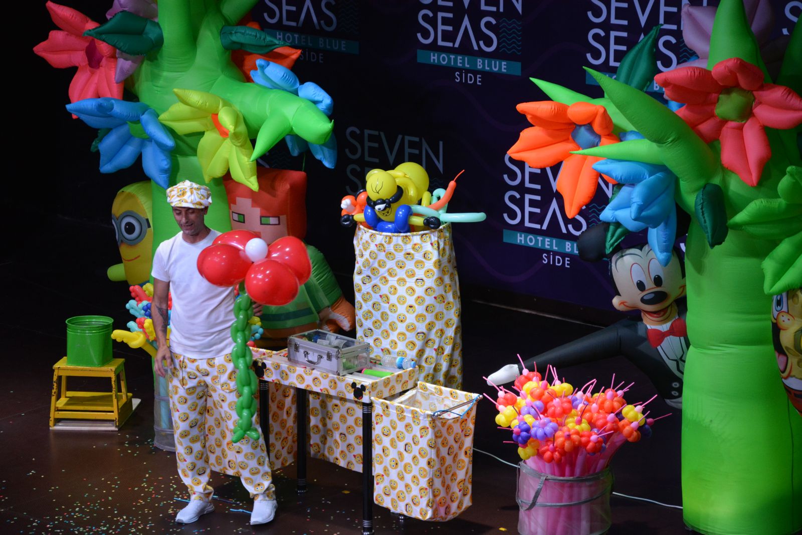 Клуб работает по удобному расписанию, согласованному с общими приемами пищи – до 17:30 с перерывом на обед (14:00-15:00). Ну а дальше – мини-диско. Каждую неделю для детей устраивают и особые шоу. Например в этот раз мы увидели balloon show.