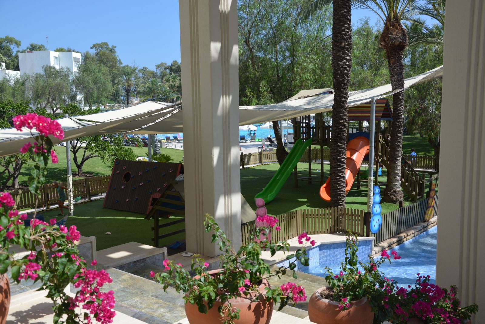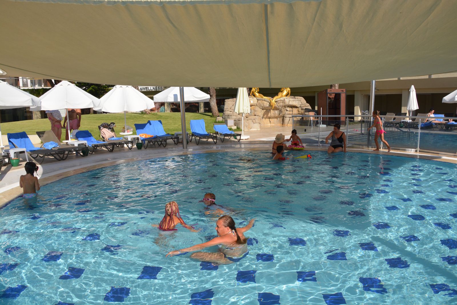 Детский бассейн глубиной 0,6 м примыкает к основному и заботливо укрыт тентом от прямого солнца. И главное – он теплый! Это в буквальном смысле главное для многих родителей, вывозящих своих детей на турецкие курорты: к сожалению, во многих, даже дорогих отелях, детские бассейны холодные (как говорят сами отельеры, из-за какой-то особой фильтрации с многими ступенями, которая не позволяет воде нагреться от воздуха или солнца).