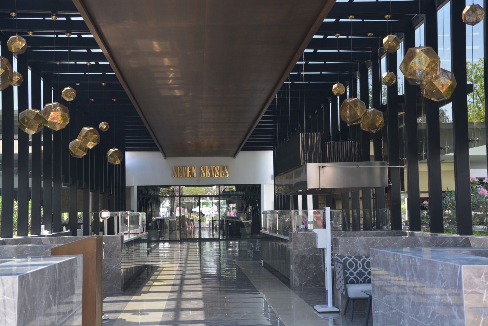 Справа от основной аллеи, которая делит пополам его территорию – светлый и просторный ресторан Seven Senses (о нем тоже отдельный рассказ), атриум со сценой для шоу и аквапарк.