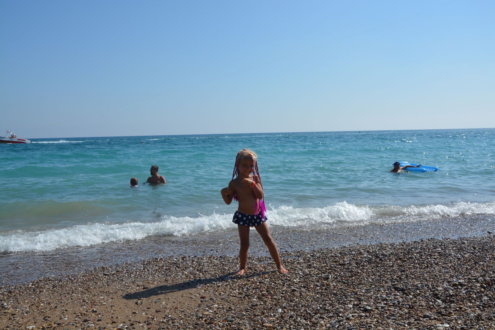 Мифы о каком-то «неудобном входе в воду», «плитах» и «камнях», которые можно встретить в ряде отзывов об отеле в интернете можно смело считать не соответствующими реальности. Ничего этого, купаясь в разных местах пляжа, ни мы, ни дети не увидели.